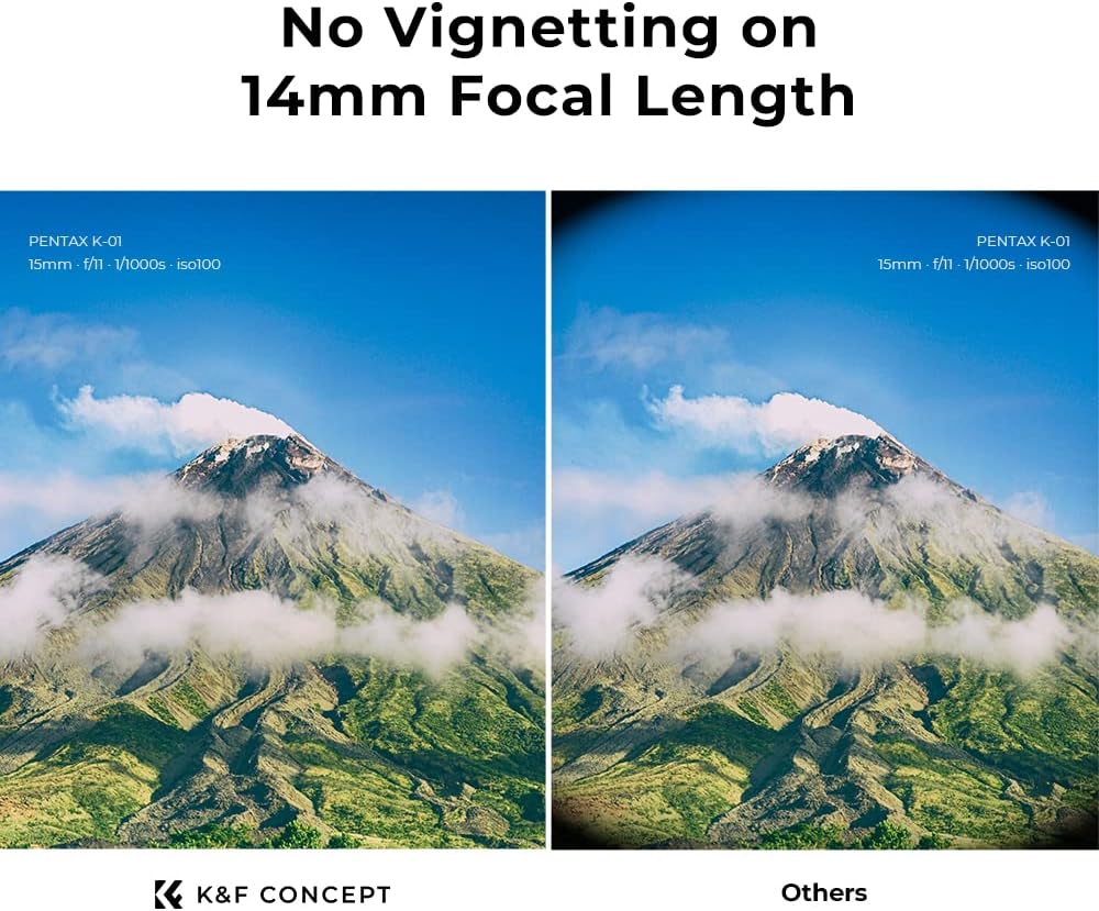 – **Ultra-Slim Design**: The sleek and lightweight design prevents vignetting on wide-angle lenses, allowing you to capture the full beauty of your scenes without distortion.